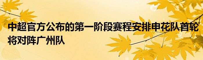 根據中超官方公布的第一階段賽程安排,申花隊首輪將對陣廣州隊,次輪則將和海港進行上海德比戰,同賽區的對手還有武漢三鎮、河北隊以及武漢長江。