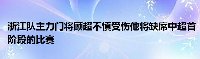 5月29日,在與中國U19國家隊進行熱身賽時,浙江隊主力門將顧超不慎受傷,他將缺席中超首階段的比賽。