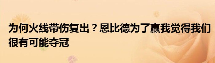 當被問及為何要火線帶傷復出時,恩比德說道:“我覺得自己有責任為球隊復出。我想贏,我覺得我們很有可能奪冠。”