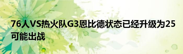 5月7日訊 據ESPN記者Tim Bontemps透露,76人中鋒恩比德G3的狀態已經升級為25%可能出戰。