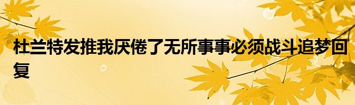 5月6日訊 今日籃網(wǎng)球星杜蘭特更新了自己的推特,他在上面寫道:我想說,我喜歡什么也不做,但是我現(xiàn)在已經(jīng)厭倦了這種無所事事的感覺,當(dāng)我這么覺得的時候,我一定會做點(diǎn)什么的,繼續(xù)奮斗!