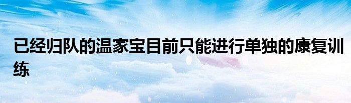 5月31日,據《新聞晨報》記者甘慧報道,已經返回上海申花隊的小將溫家寶目前只能進行單獨的康復訓練,還無法加入到全隊的合練之中,這意味著他很可能會缺席中超聯賽第一階段前幾輪賽事。