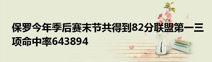 據統計,本賽季季后賽第四節中保羅共得到了82分,投籃共計47中30,三分16中6,罰球17中16,共送出20次助攻,僅有5次失誤。