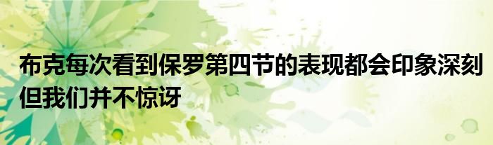 談到本場(chǎng)比賽保羅第四節(jié)的表現(xiàn),布克說道:“每次看到保羅第四節(jié)的表現(xiàn)都會(huì)給我們留下深刻印象,但這種表現(xiàn)并不讓我們感到驚訝。”