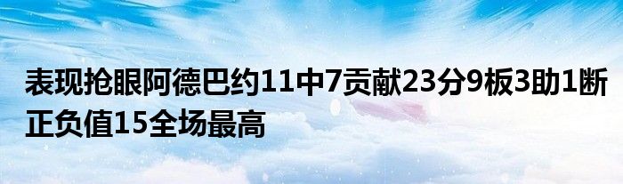 值得一提的是,阿德巴約本場的得分、籃板和正負值均為全隊最高。