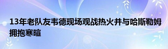 本場比賽爵士隊小老板、熱火名宿韋德今晚攜妻子尤尼恩現場觀戰,韋德與熱火隊長哈斯勒姆相擁并寒暄片刻。