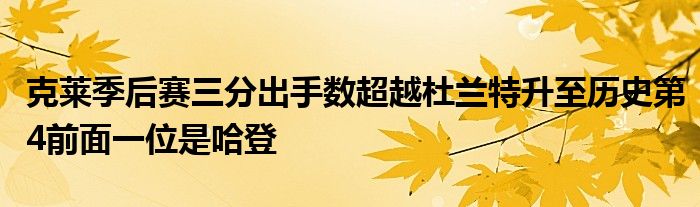 這樣一來,克萊個人季后賽生涯三分出手數來到972次,超越前隊友杜蘭特升至歷史第四,前三分別是詹姆斯、庫里和哈登。