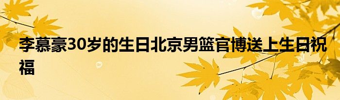 今天是李慕豪30歲的生日,北京男籃官博送上生日祝福。
