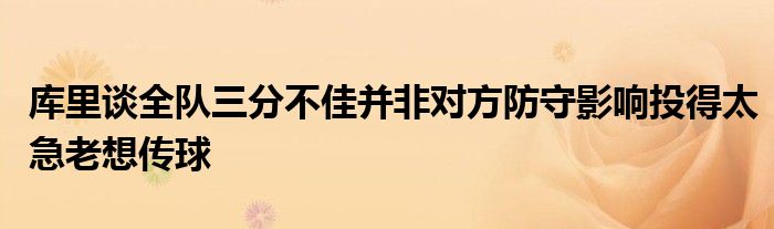 談到全隊三分38投7中,庫里說道:“我們就是這樣一支球隊,一直以來三分就是我們的特點。我覺得很多三分打鐵并不是對面防守導致的,而是我們投得過于倉促,有時候沒機會也非要傳球。”