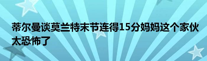在被記者問到對莫蘭特第四節連得15分有何感想時,蒂爾曼表示:“媽媽,這個家伙太恐怖了!他是個行走的得分機器,他知道如何去到他喜歡的位置,尤其是在比賽的關鍵時刻,我不知道防守他的人當時腦子里在想什么,但你真的很難阻止他?!?/p>