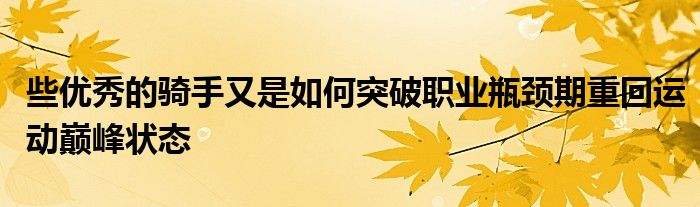 那么這些優(yōu)秀的騎手又是如何突破職業(yè)瓶頸期,重回運動巔峰狀態(tài)的呢?