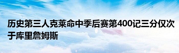 克萊至此成為NBA歷史第三位在季后賽投進400記三分的球員,僅次于庫里和詹姆斯。
