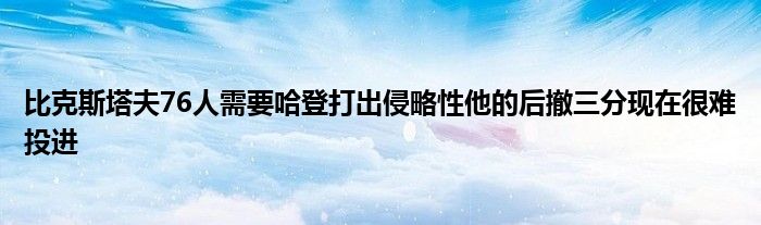 “在過去的一年半里,哈登的問題是如何適應三個不同的陣容。在籃網他就是組織進攻,現在76人需要他打出侵略性,更早地打出侵略性。現在對手會讓很多人防守哈登,他們會雙人包夾哈登,或者迫使他放棄進攻,他曾經很穩定的后撤步三分現在很難投進了。”