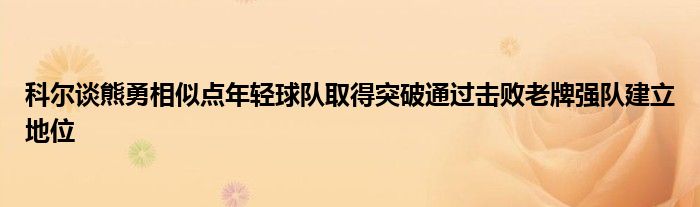 5月3日訊今日,勇士主教練科爾接受了采訪。