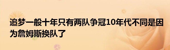 “一般情況,十年之內一般只有兩支球隊在競爭總冠軍。但是21世紀10年代情況有些特別,因為詹姆斯換隊了。總之,奪冠是一件非常難的事情,所以我會尊敬每一個能夠組建一支冠軍球隊的人。”