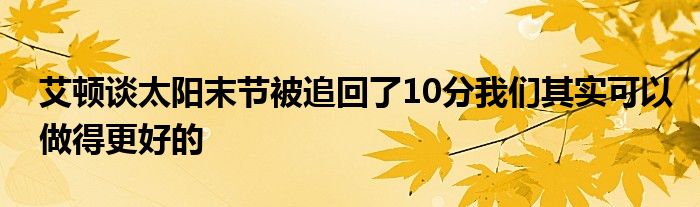 在前三節打完后,太陽手握17分領先,但末節他們輸了10分。在接受采訪時,艾頓談到了太陽末節的表現,他這樣說道:“我們沒有按照我們想要的方式去終結比賽,這是一種有些情緒化的能量。我們有些安靜,因為我們知道我們可以做得更好的。”