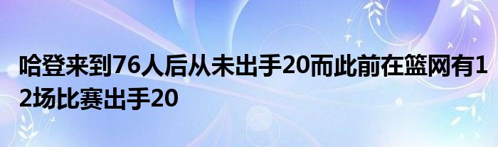 數據顯示,哈登來到76人后從未出手過20+,單場最高出手次數為19次。而本賽季在籃網,哈登有12場比賽出手次數超過20次。