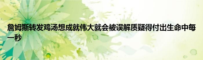 詹姆斯轉(zhuǎn)發(fā)雞湯想成就偉大就會被誤解質(zhì)疑得付出生命中每一秒