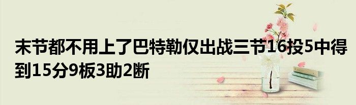此役,熱火球星巴特勒只打了前三節(jié),共出戰(zhàn)30分鐘,16投5中,罰球4中4,共得到15分9籃板3助攻2搶斷。