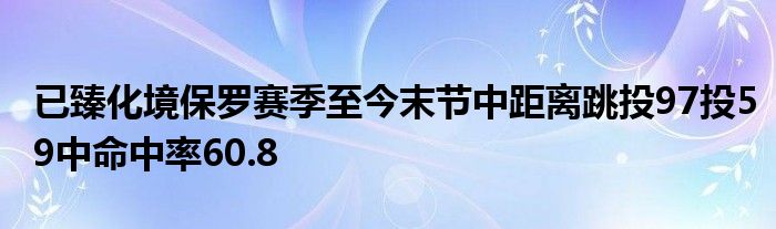 本賽季至今,保羅末節(jié)中距離跳投合計97投59中,投籃命中率為60.8%。