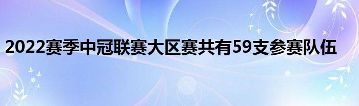 2022賽季中冠聯賽大區賽共有59支參賽隊伍,共設置云南麗江、山東日照、福建漳州、廣西貴港、廣東肇慶、寧夏銀川、陜西渭南、遼寧大連等八個賽區。大區賽分為小組賽與淘汰賽兩個階段,小組賽階段采用單循環積分賽制,每組前兩名晉級,淘汰賽階段采用雙回合交叉淘汰賽制,淘汰賽勝者進入總決賽,比賽將于6月18日-8月25日進行。