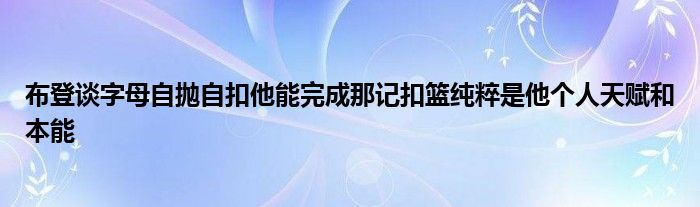 比賽第四節,字母哥上演了一記自拋自扣,對于這一球,布登表示:“他能完成那記扣籃,純粹是他的個人天賦和本能。他是一名偉大的球員,他所做的事情都是獨一無二的、特別的和及時的。這一球是,當他是我們隊的時候,你就會感到很高興的那種球。”
