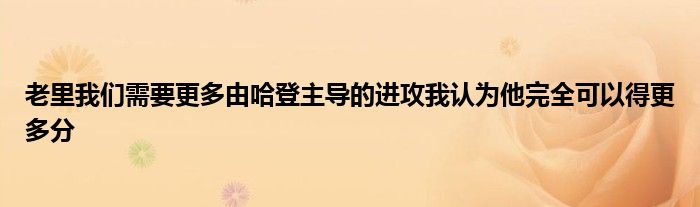 老里表示:“我們需要打出更多由哈登主導(dǎo)的進(jìn)攻,我相信他完全有能力得更多分。對(duì)于這個(gè)要求,他也不會(huì)有問(wèn)題。我們會(huì)以哈登為核心,在場(chǎng)上創(chuàng)造更多空間?!?/p>