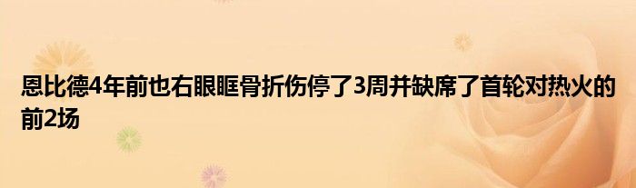 而四年前的2018年,恩比德也曾因右眼眶骨折缺席大概3周比賽,包括季后賽首輪對(duì)陣熱火的前2場(chǎng)比賽,在G3才復(fù)出。