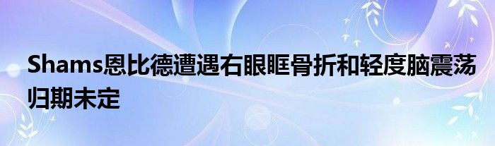 4月30日訊 據Shams報道,恩比德遭遇右眼眶骨折和輕度腦震蕩,目前是缺陣狀態,歸期未定。