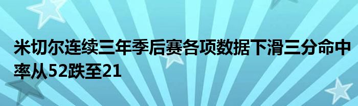 4月30日訊昨天,爵士不敵獨行俠,被淘汰出局。數據網站StatMuse列舉了米切爾在近三年的季后賽中,共有5項個人數據持續下滑。