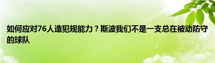 在今天接受采訪時,熱火主帥斯波爾斯特拉被問及了要如何應對76人隊的造犯規能力,對此斯波這樣說道:“我們就是我們,我們不是一支總在被動防守的球隊。問題的關鍵在于誰能鉗制住對方,誰能發揮他們的長處。”