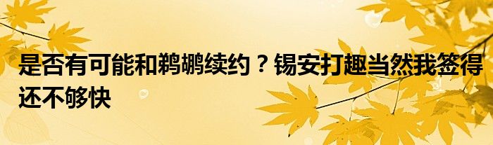 今天,錫安接受了記者的采訪,當(dāng)被問(wèn)到在這個(gè)休賽期與鵜鶘完成續(xù)約的可能時(shí),錫安笑著回答道:“當(dāng)然!我簽得還不夠快。”