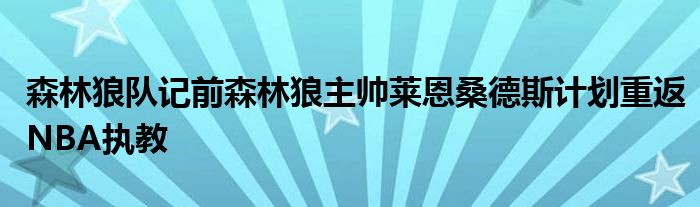 4月29日訊 據森林狼隊記Patrick Reusse報道,前森林狼主教練萊恩-桑德斯計劃下賽季重返NBA執教。