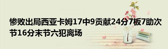 全場比賽,西亞卡姆出戰43分47秒,投籃17中9,三分4中0,罰球7中6,得到24分7籃板7助攻3搶斷,但另有3次失誤同時六犯離場,正負值-32。