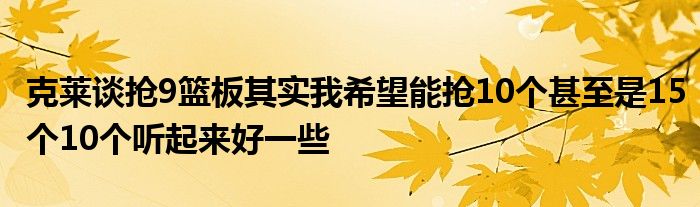 本場比賽,克萊搶得了9個籃板,全隊最多。在賽后接受采訪時,克萊對此這樣說道:“這是邁克-布朗給我的挑戰,我希望我能搶下10個,甚至是15個的,10個聽起來好一些。”