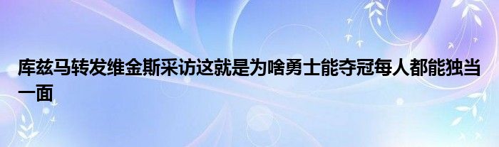 奇才球員庫茲馬轉發(fā)了這段采訪,并寫道:“這就是勇士隊最棒的一點,以及為什么他們這賽季能夠奪冠。每個人都能獨當一面。