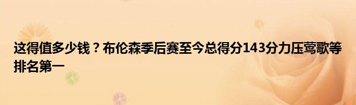 4月28日訊 據統計,本賽季季后賽至今,布倫森的總得分為143分,力壓英格拉姆等球星排名聯盟第一。