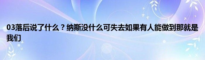 今天猛龍主教練納斯接受了采訪,當被問到0-3落后跟球隊說了什么這個問題時,納斯說:“我們已經(jīng)沒什么可失去的了!如果有人能夠做到,那就是我們!”