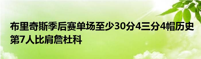 據統計,布里奇斯是季后賽NBA歷史上第七位拿到30分,并且命中4記三分,拿到4個蓋帽的球員。其他六位分別是詹姆斯,杜蘭特,萊昂納德,科比,諾維斯基,卡特。