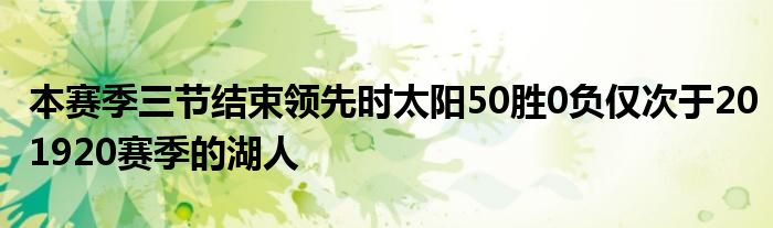 在NBA歷史上,單賽季前三節領先不敗的球隊紀錄屬于2019-20賽季的湖人隊,他們在當賽季第三節結束領先進入第四節時取得57勝0負的戰績。