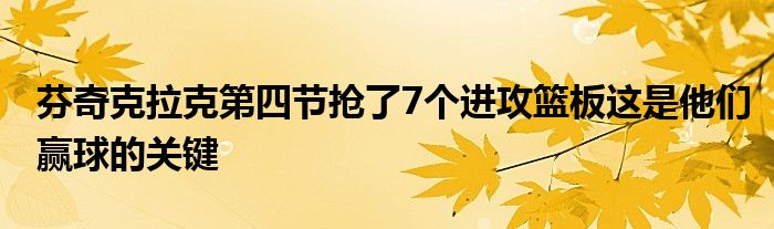 談到本場比賽失利的原因,芬奇說道:“克拉克第四節搶了7個進攻籃板,這是他們能夠贏球的原因。”