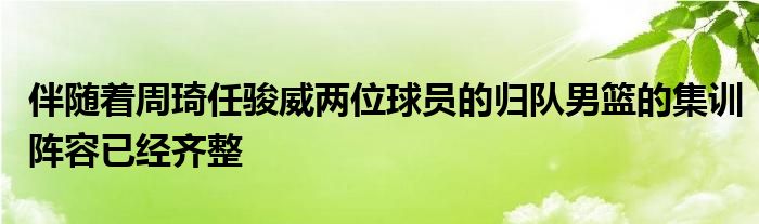伴隨著周琦、任駿威兩位球員的歸隊,中國男籃的集訓陣容已經齊整。他們在本月底啟程前往墨爾本,參加世預賽的比賽。此后中國男籃還要參加亞洲杯比賽。