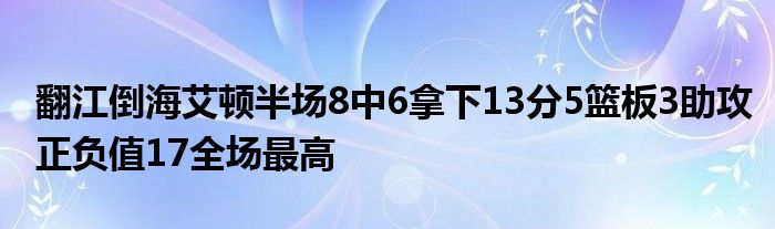 半場比賽,太陽中鋒艾頓出戰(zhàn)18分鐘,投籃8中6,三分1中0,罰球2中1,拿下13分5籃板3助攻,出現(xiàn)2次失誤,正負(fù)值+17全場最高。