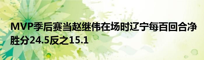 數據顯示,整個季后賽9場比賽中,當趙繼偉在場時,遼寧全隊百回合凈勝分為+24.5,而趙繼偉不在場時,該數據為-15.1。也就是說當趙繼偉上場時,遼寧每百回合多得39.6分。