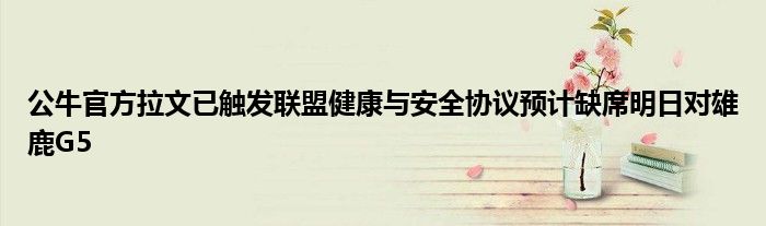 4月27日訊 今日,公牛官方宣布,球隊球星拉文已觸發聯盟健康與安全協議。