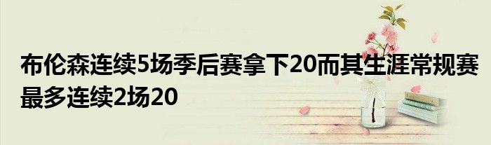 數據顯示,本場比賽是布倫森連續第5場季后賽拿下20+,而其生涯常規賽最多連續2場20+。
