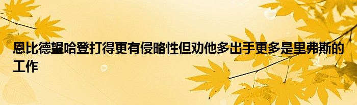 當被問及哈登是否需要更多的投籃出手時,恩比德表示:“自從他本賽季來到球隊后,我一直都希望他打得更有侵略性一些,他需要去做自己。這不是我的工作,這更多的是里弗斯的工作,尤其是對手像現在這樣防我的時候更是如此?!?/p>