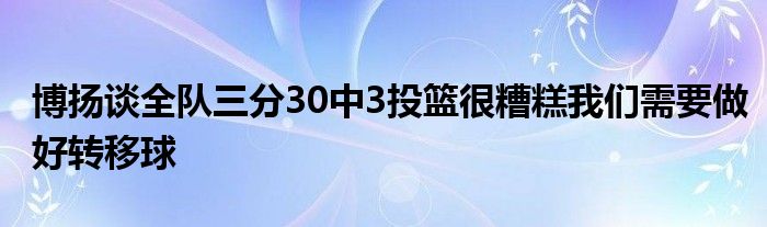 談到本場全隊的三分球30投僅3中,博揚表示:“我們的投籃很糟糕,而對手的防守做得很出色。我們需要做好轉移球,以正確的方式去打球。”