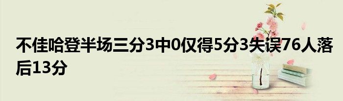 4月26日訊76人半場41-54落后猛龍,哈登三分3中0。