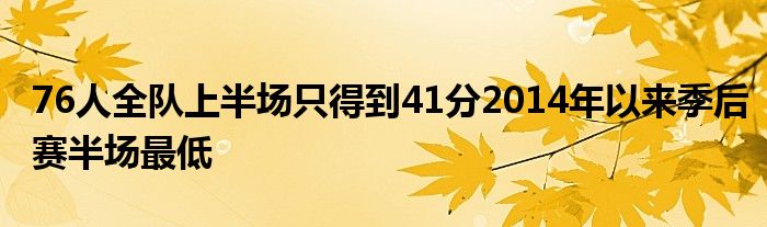 在上半場比賽中,76人全隊手感欠佳只得到41分,創造了自2014年以來NBA季后賽半場最低得分。